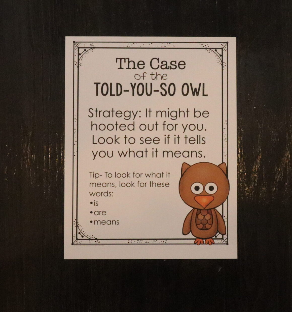Give students visual prompts of the vocabulary strategies. If students only employ vocabulary strategies when they are reading to you, they are not practicing them enough. They need to be using vocabulary strategies when they are doing independent reading. Visuals are great reminders to use the vocabulary strategies, and it also helps make them more concrete to understand. You can do this easily with some index cards or anchor charts printed four to a page.